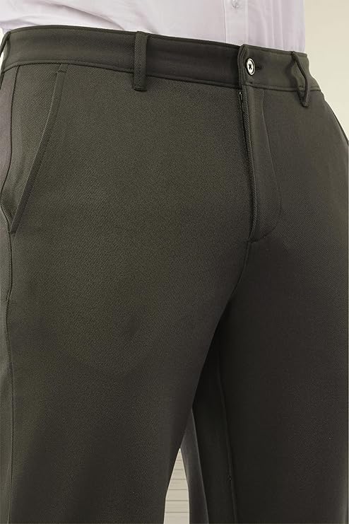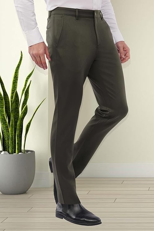 Material typePoly-lycra Blend LengthStandard Length StyleFormal Trouser Closure typeButton Care instructionsMachine Wash Fit typeSlim Country of OriginIndia