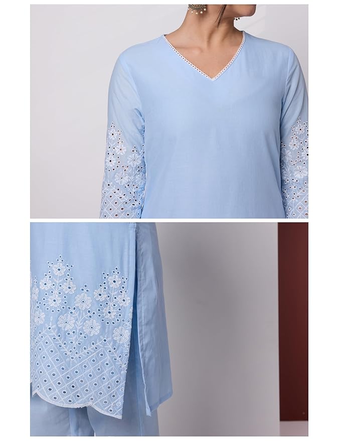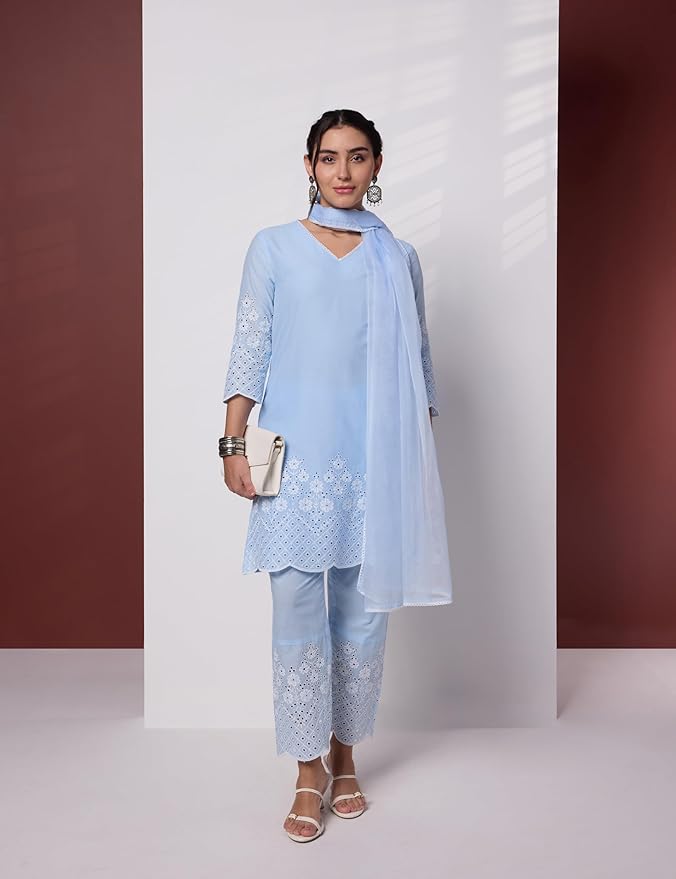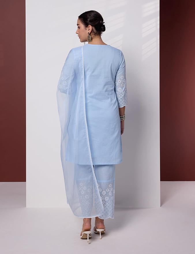 Women's Pure Cotton Schiffli Embroidered Kurta Set with Dupatta