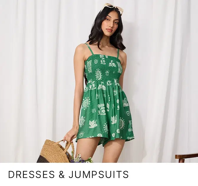 Sunheri 100% Cotton Front Pleated Smocked Midi Dress